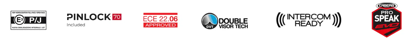 ל-CABERG DUKE EVO תקן כפול P/J וניתן להשתמש בה גם כקסדה סגורה (P) וגם כקסדה פתוחה (J) כאשר נועלים את מגן הסנטר במצב פתוח באמצעות מנגנון הנעילה.